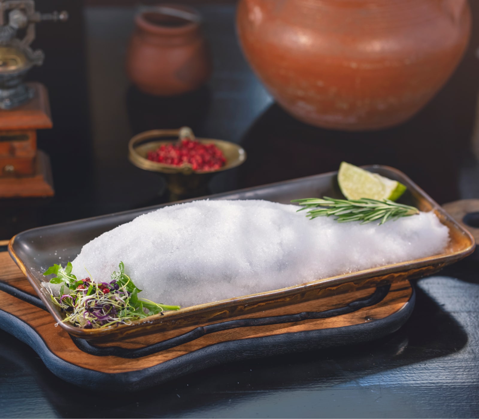 Dorada (100g), sos pesto (20g), lamaie (30g), sare de mare(2g).